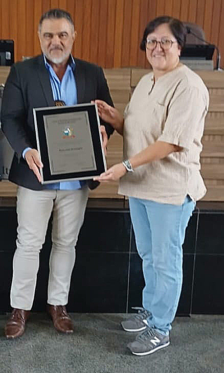 O Chefe do Complexo Penal de Itapetininga, Elcio José Bonsaglia, recebeu, no dia 30 de janeiro, no Gabinete da Vereadora Catarina Aparecida Nanini Motta, o Título de Cidadão Itapetiningano. A honraria foi concedida por iniciativa da vereadora, em reconhecimento ao trabalho desenvolvido pela Polícia Penal do Estado de São Paulo na região.