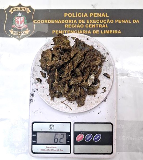 De forma voluntária, em local reservado, a visitante entregou à Policial Penal presente o material com características semelhantes à maconha, pesando aproximadamente 62 gramas.