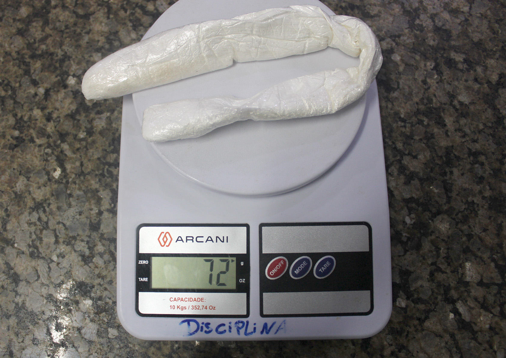 Ao ser indagada, de forma espontânea ela confirmou que levava um invólucro contendo entorpecentes. Ela entregou o objeto que ocultava 48 gramas de substância aparentando ser maconha e 40 gramas de material semelhante à cocaína.