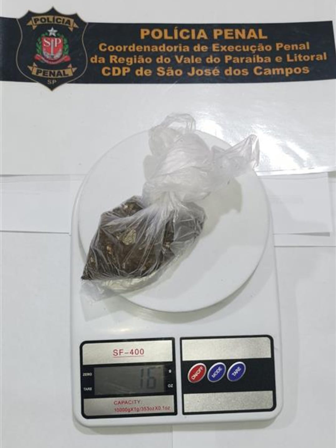 No sábado (21), o Centro de Detenção Provisória de São José dos Campos somou duas apreensões de ilícitos durante a inspeção no aparelho de escâner corporal. Uma mulher, companheira de um sentenciado, foi surpreendida quando o equipamento apresentou anormalidades nas imagens captadas. Ela admitiu às Policiais Penais de plantão que escondia entorpecente em sua roupa íntima e, voluntariamente, retirou da calcinha um invólucro que continha 16 gramas de maconha.
