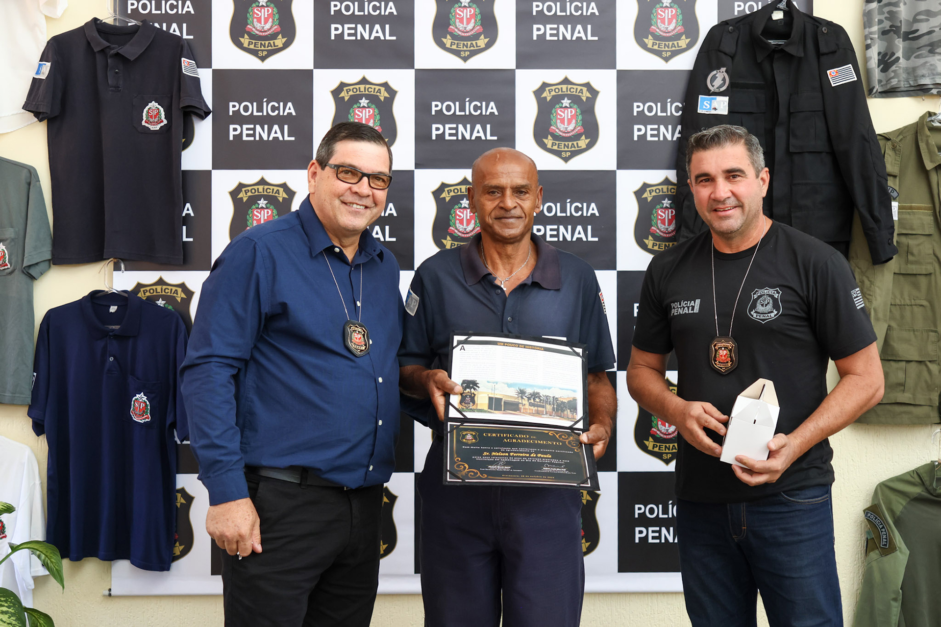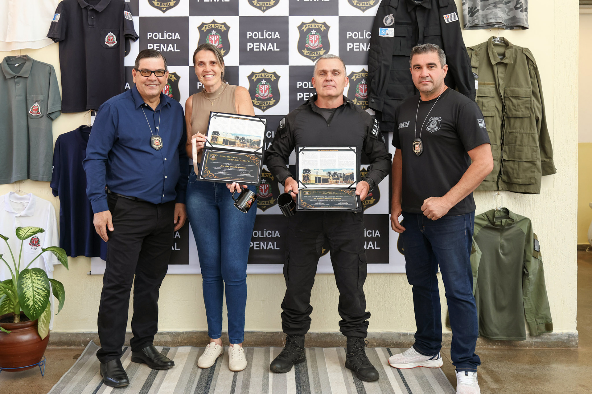 Chefe de Departamento da Penitenciária de Araraquara Alexandre Ricardo Razera (à direita) realizou entrega das homenagens
