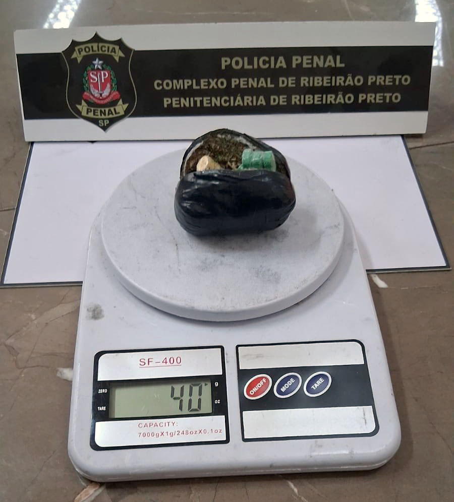 No domingo (25), Policiais Penais apreenderam material ilícito durante o procedimento de revista no aparelho de escâner corporal, no horário de entrada de visitantes, na Penitenciária de Ribeirão Preto.