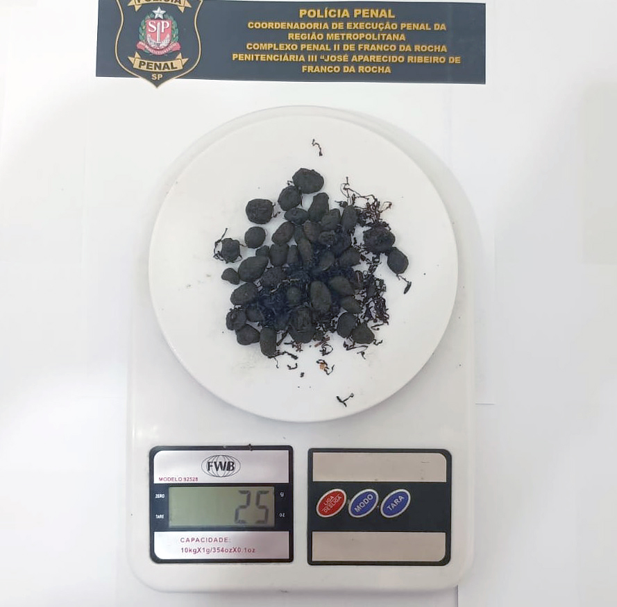 Durante procedimentos de revista em itens enviados pela mãe do preso, os Policiais Penais da Penitenciária III "José Aparecido Ribeiro, de Franco da Rocha, apreenderam ilícito na última 4ª feira, dia 22. Foram encontradas 25 gramas de substância semelhante à maconha camufladas em 12 embalagens de fumo do tipo Arapiraca.