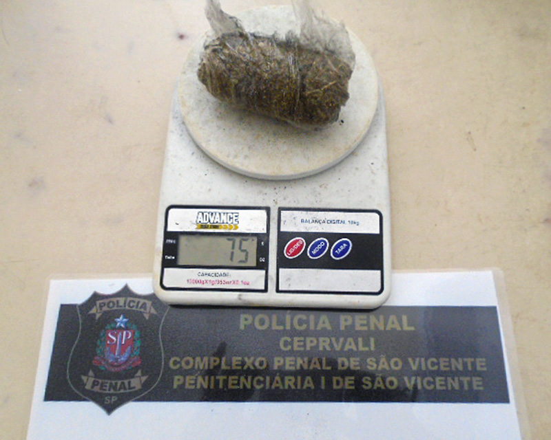Já a segunda apreensão aconteceu no CDP de São Vicente, quando uma mulher tentou visitar o companheiro preso. Ela foi flagrada ao passar pela revista no escâner corporal e o aparelho mostrar alterações nas imagens captadas. Ela confessou que trazia droga consigo e voluntariamente retirou da parte íntima quatro invólucros que continham 35 gramas de maconha.