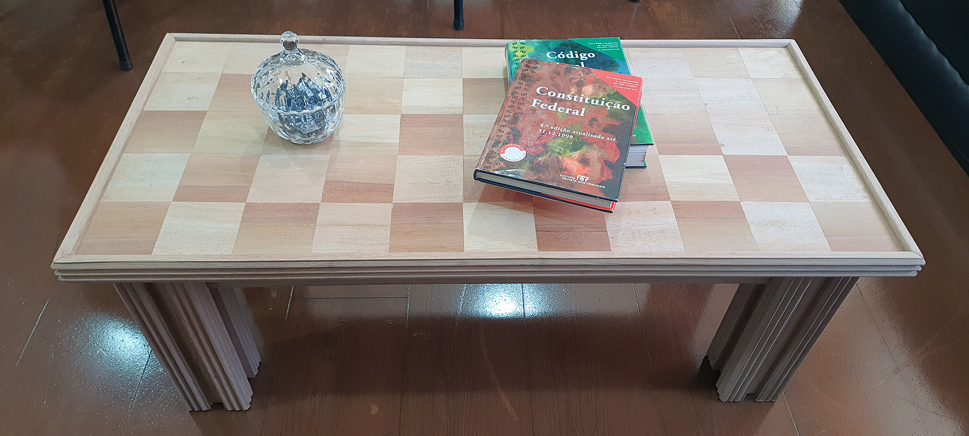 Mesa produzida por reeducandos durante o curso para uso no estabelecimento penal