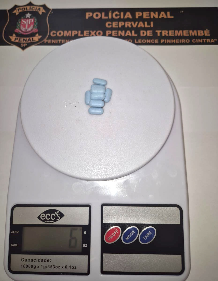 A Polícia Penal do Estado de São Paulo informa que domingo, 28, uma mulher foi impedida de visitar o companheiro preso no Complexo Penal de Tremembé. No momento dos procedimentos de segurança para a entrada de familiares na unidade, ela foi flagrada portando oito comprimidos de estimulante sexual, pesando ao todo aproximadamente seis gramas.