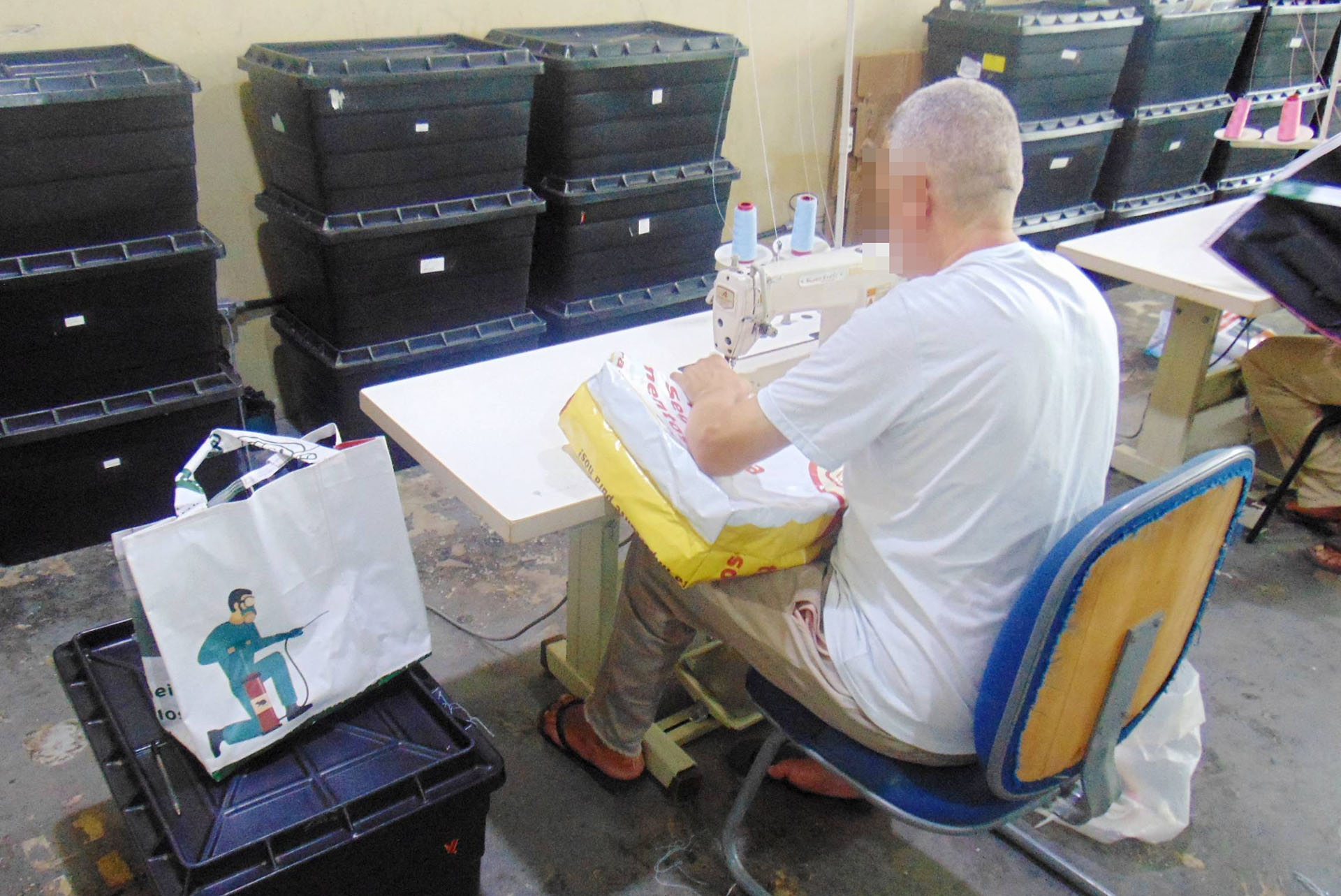O estabelecimento penal, em parceria com a Funap, produz 200 sacolas semanais para o Projeto Saco Verde