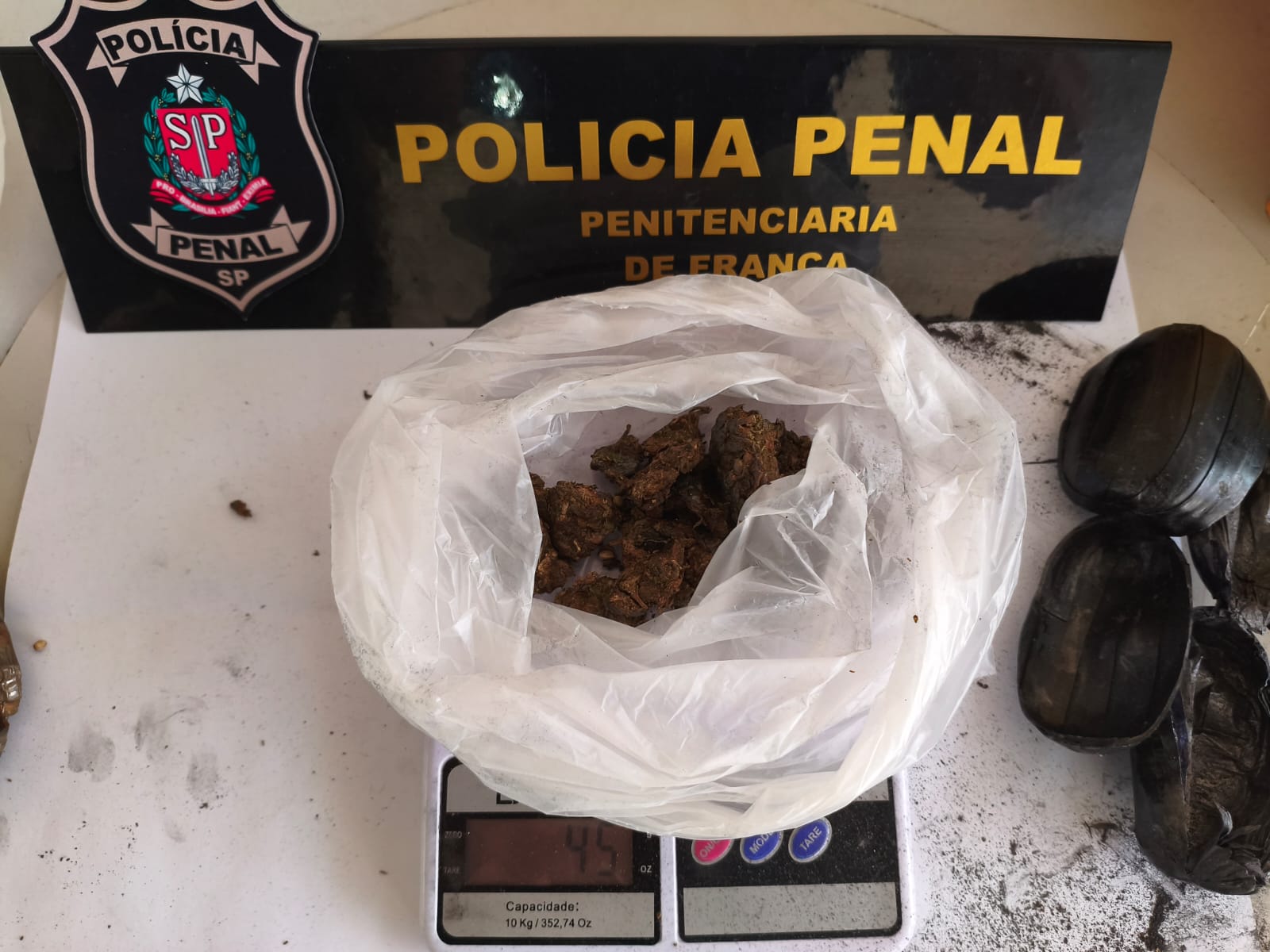 No domingo, (18), ainda no Centro de Detenção Provisória “Marcos Amilton Raysaro” de Icém, a companheira de outro sentenciado, após ser submetida ao aparelho de escâner corporal, confessou estar portando um invólucro com substância esverdeada análoga à maconha, contendo 136 gramas.