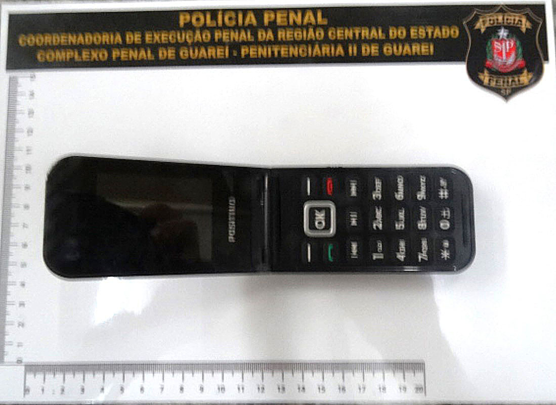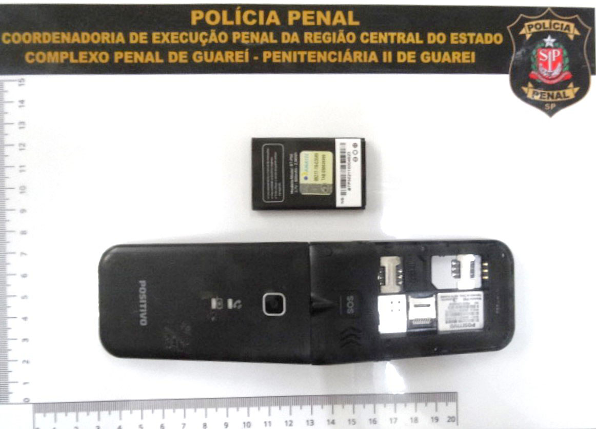 A Polícia Penal do Estado de São Paulo informa que, no dia 4 de janeiro, durante o procedimento de revista de visitantes na Penitenciária II do Complexo Penal de Guareí, foi identificado, por meio de equipamento de raio X, um aparelho celular, acompanhado de bateria e adaptador para chip, ocultos na sacola da visitante.