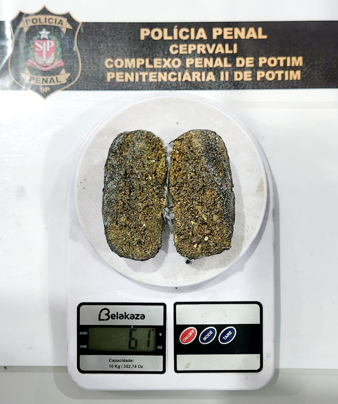 Já no domingo (27), a Penitenciária II de Potim interceptou 61 gramas de maconha com uma visitante de 37 anos, companheira de um recluso. Ela também foi flagrada durante o procedimento no escâner corporal e confessou o porte da droga. Voluntariamente ela retirou da região íntima um embrulho que guardava o ilícito.